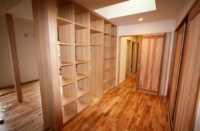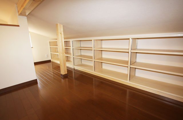 屋根裏スペースを有効活用し、収納棚を施工しました。