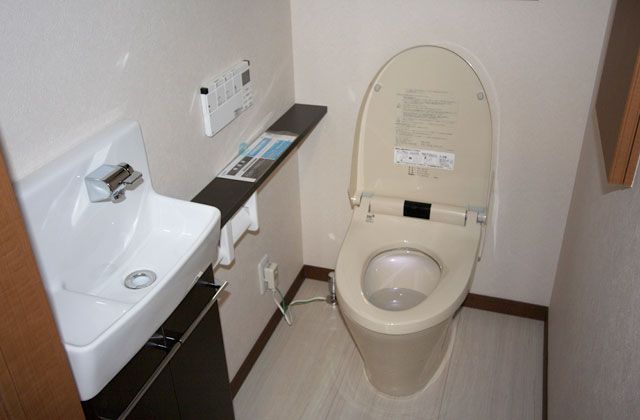 手洗カウンター付きトイレを施工しました。