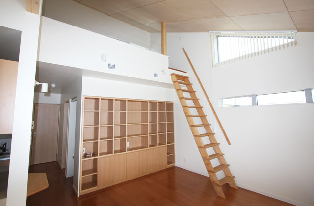 ロフトを設け、天井を高くすることで、開放感のある空間にしました。